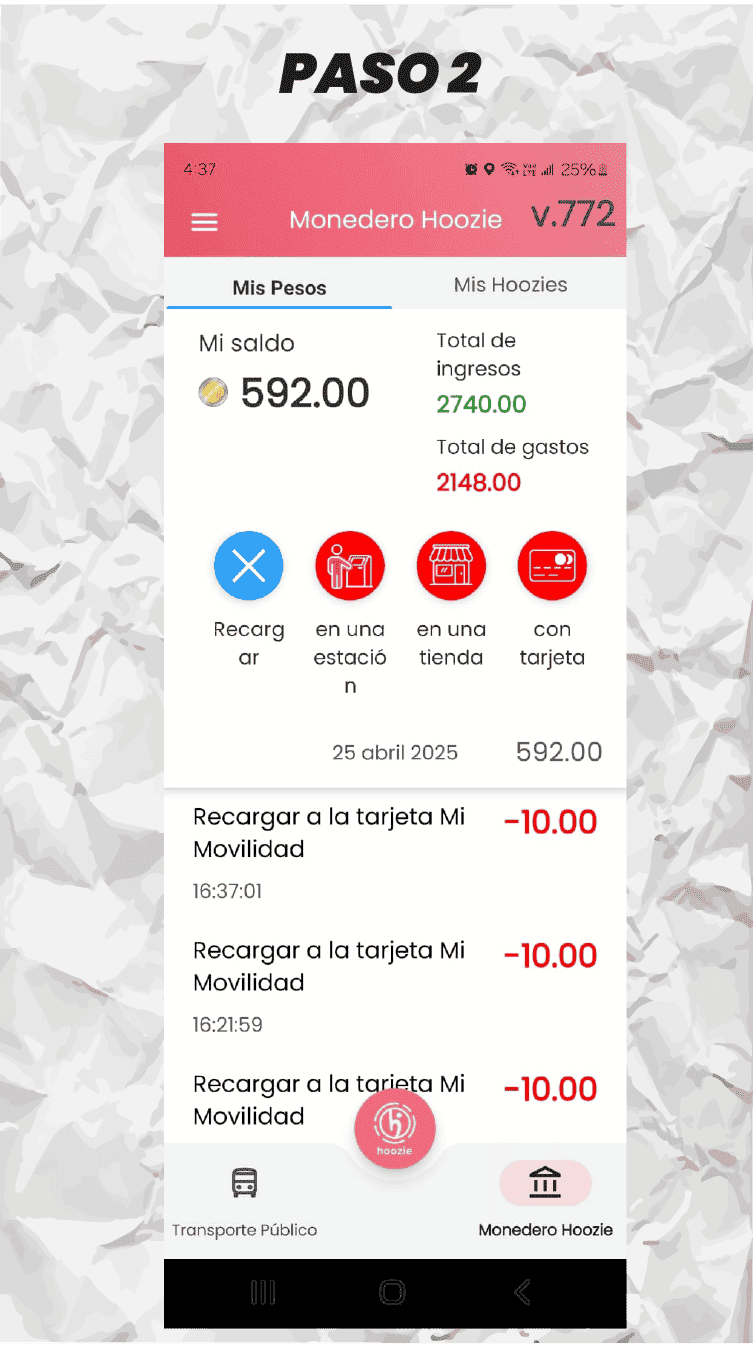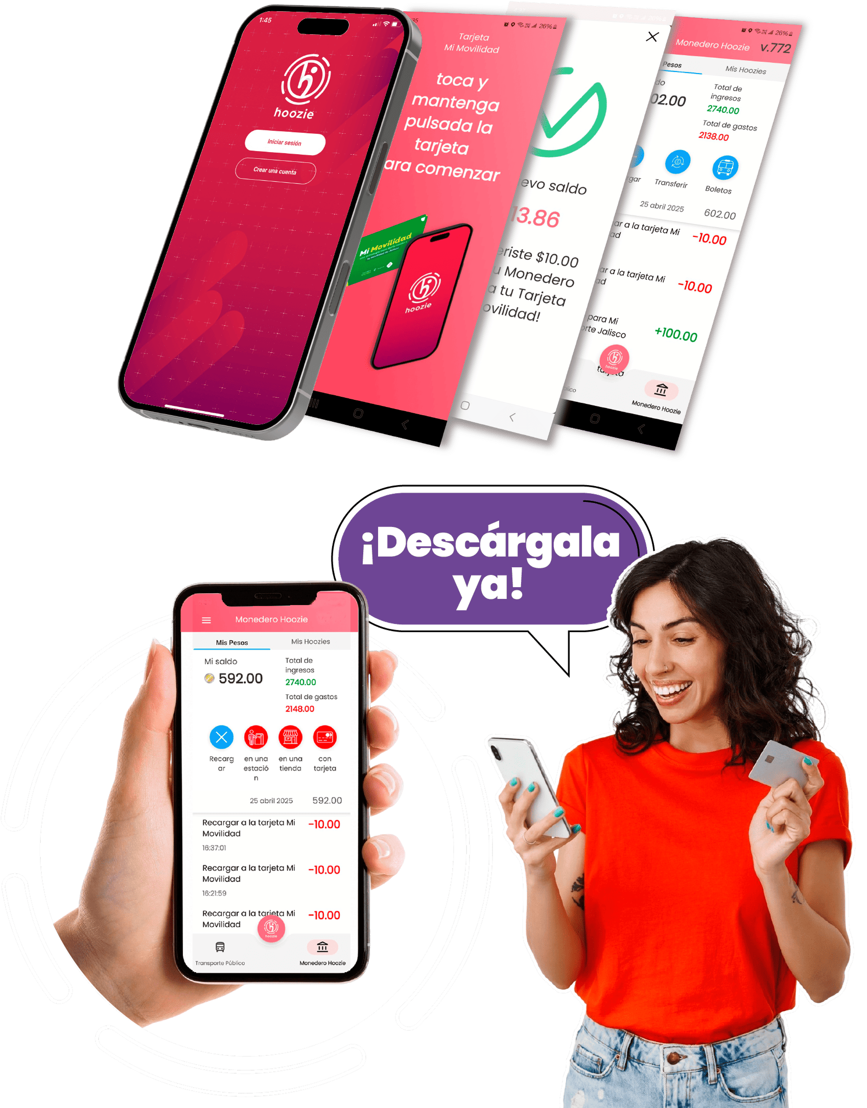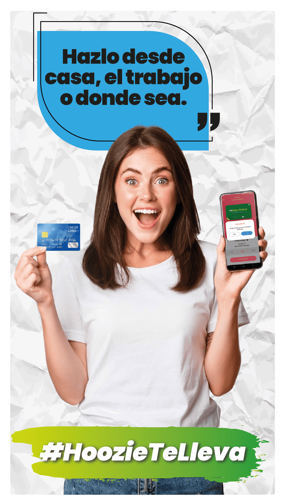 Hoozie es una app que te permite RECARGAR la tarjeta Mi Movilidad de transporte público desde tu celular desde cualquier lugar de manera fácil y segura.
